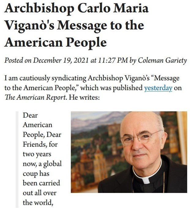 FYI: Let us be proud that Carlo Maria Vigano was courageous enough to speak out on behalf of freedom-loving people everywhere. Isn't it sad that he was excommunicated by the Pope following his letter's publication. It's a shame that the Pope didn't understand the importance of the message!