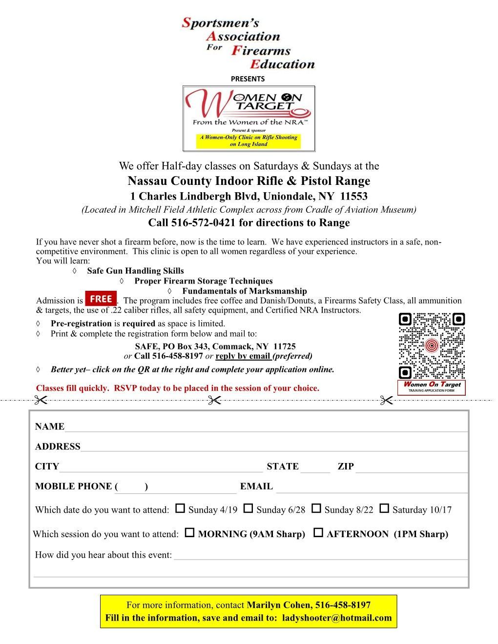 To register for classes, print and mail the flyer below, or complete the registration form below the flyer. Join the many women who have completed our informative safety training class.