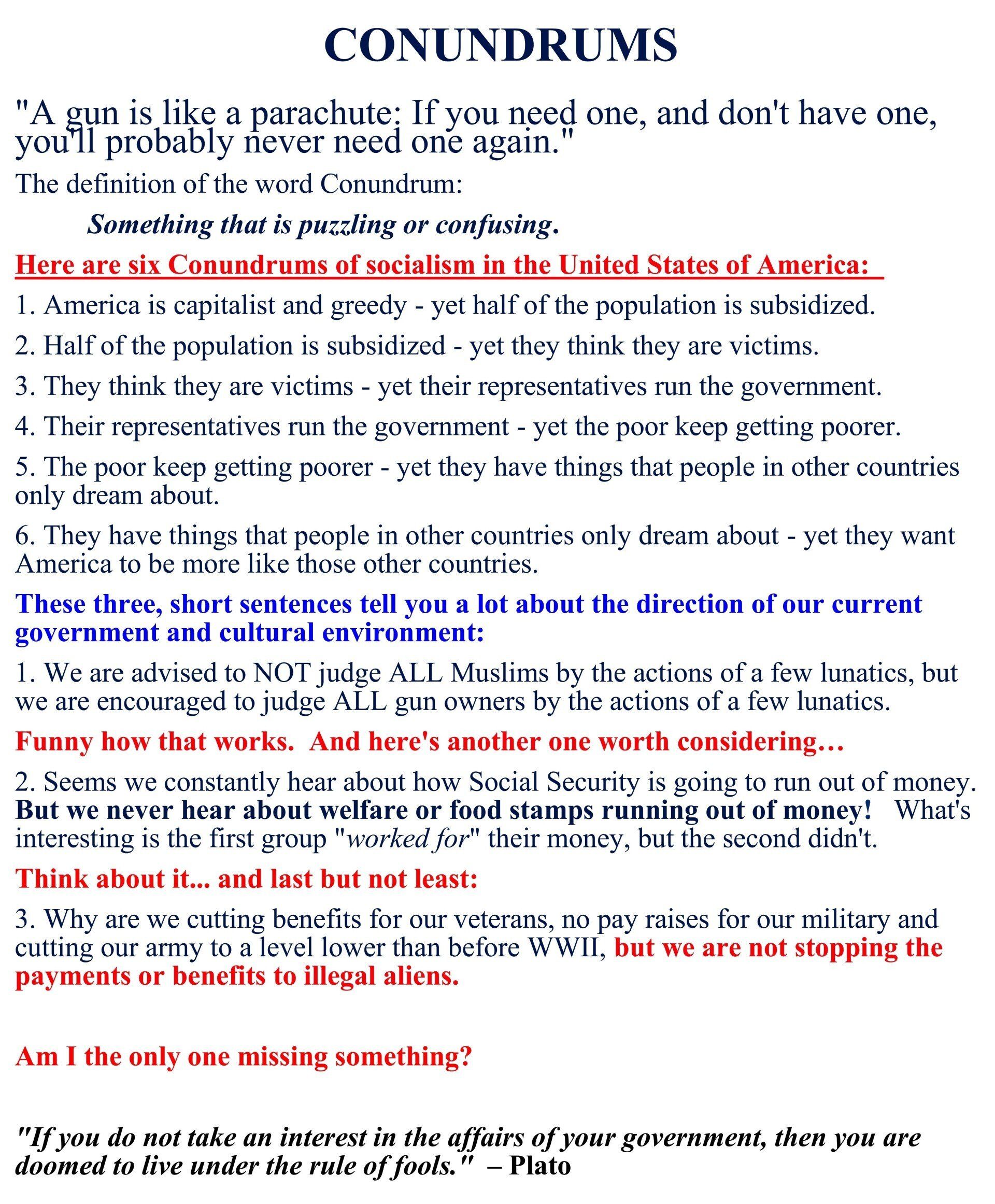 Quote for today: "The problems we face today are there because the people who work for a living are now outnumbered by those who vote for a living."