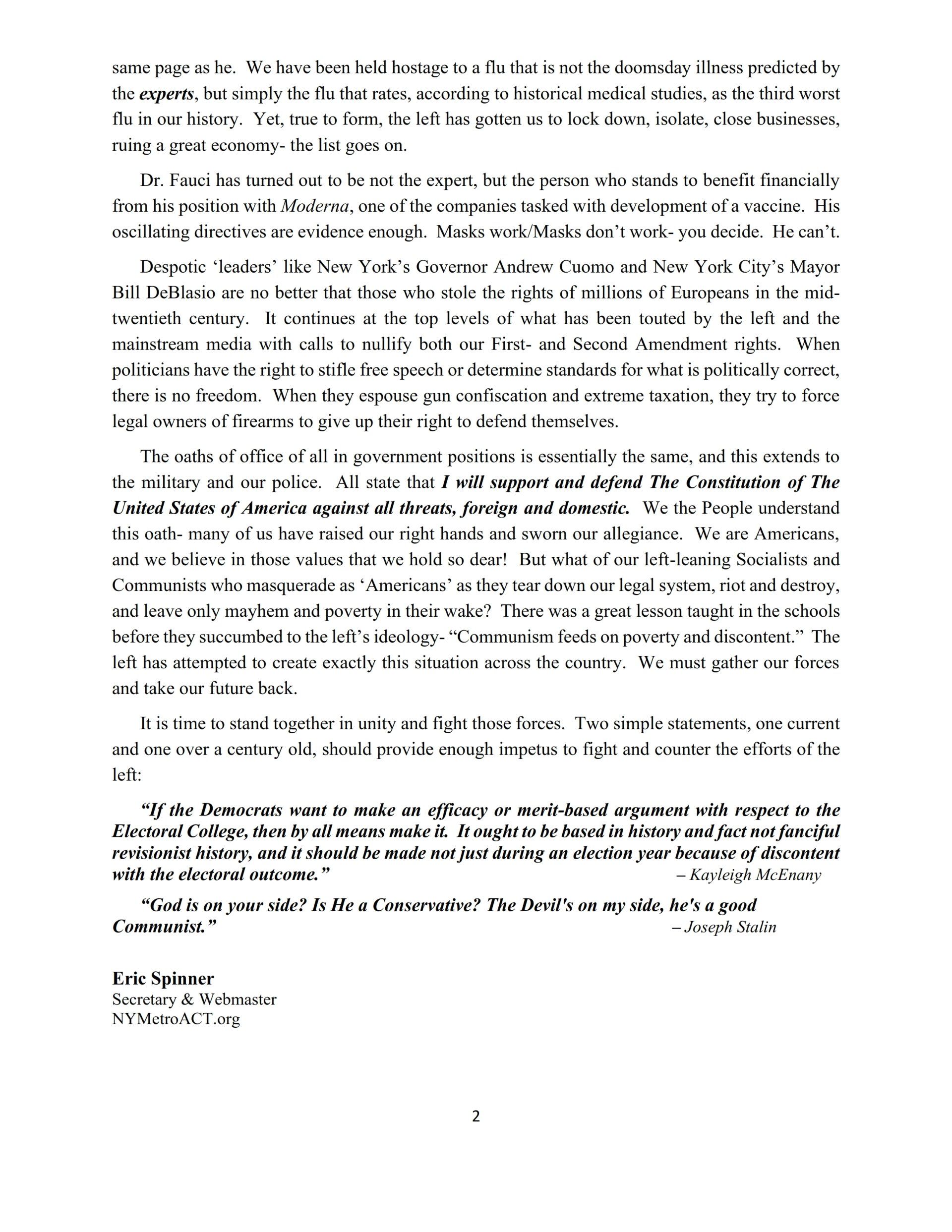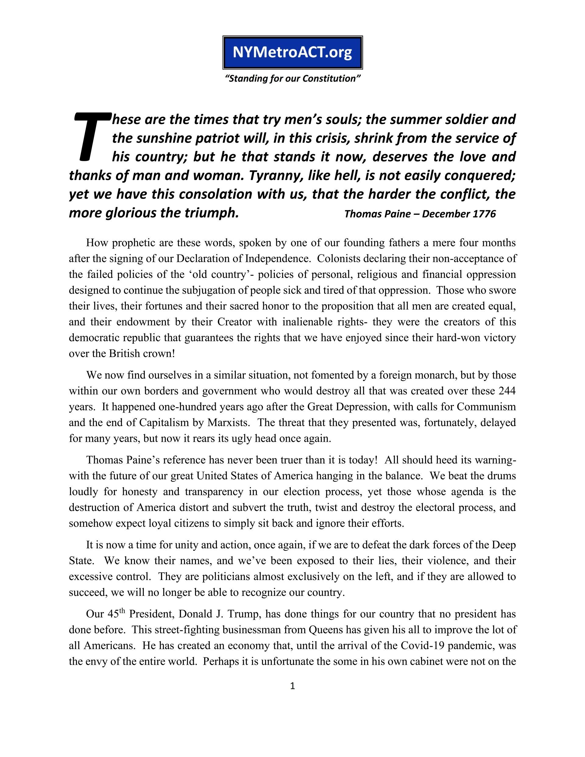 Click HERE to view, then return to REGISTER for our next meeting and join ACT for America to receive their Act Now Alerts for National and State issues.
